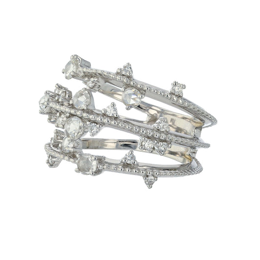 Naira & C Three Row Rose Cut Diamond White Gold Ring A254CK