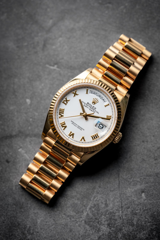 Rolex Day-Date 36mm Yellow Gold President White Dial Gold Roman 128238
