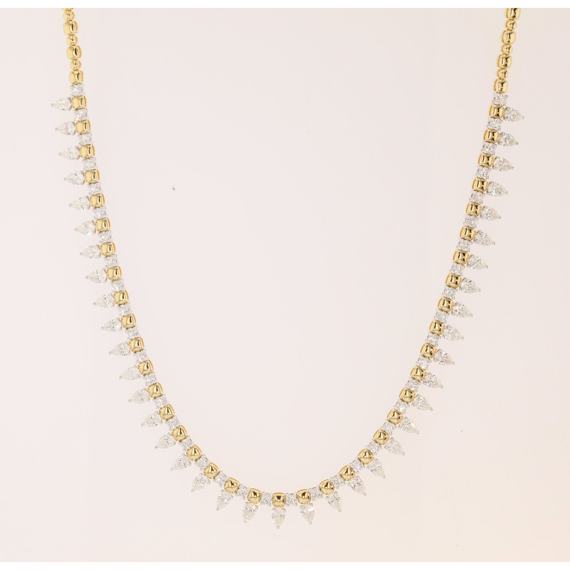Naira & C Collective, Pears and Rounds 18K Yellow Gold Necklace, 17 inch in length, 7.58 carats of natural diamonds.